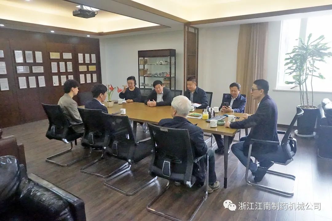4月25日,中國制藥裝備行業(yè)協(xié)會秘書長陳滬生、張炳勛,協(xié)會副理事長王滬育、張同祥等領(lǐng)導(dǎo)一行,在瑞安地區(qū)主要制藥機械企業(yè)負(fù)責(zé)人陪同下,蒞臨浙江江南制藥機械有限公司調(diào)研指導(dǎo)工作。