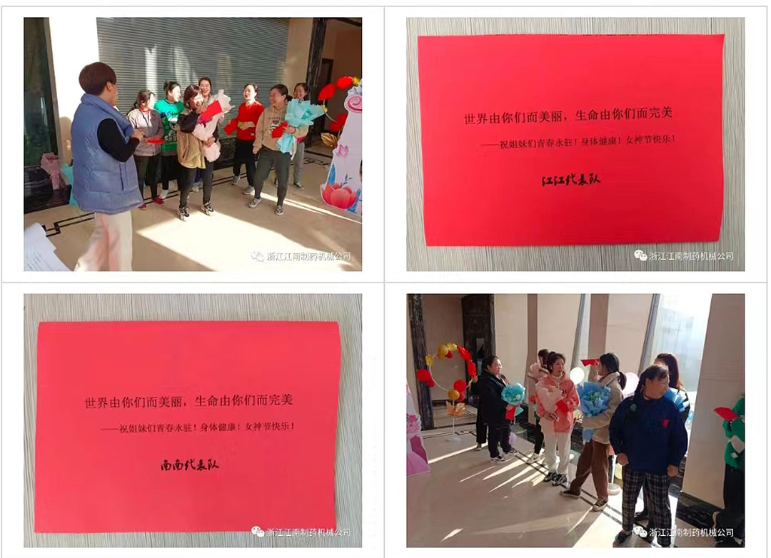 在“三八”國際勞動婦女節來臨之際,為了促進女職工身心健康,展示女職工健康向上、文明快樂的精神風貌,進一步激發員工爭先創優的熱情,增強員工的凝聚力和集體榮譽感,浙江江南制藥機械有限公司組織開展“魅力女性,快樂巾幗”慶祝“三八”國際勞動婦女節主題活動。