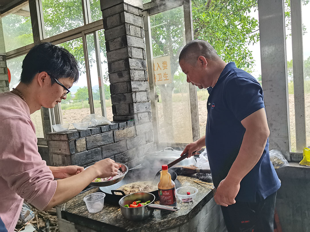 到達目的地后,大家按照事先準備的分組分工,開始有條不紊的忙碌,洗菜、切菜、燒火,炒菜,忙中有序,團隊的成員們各顯神通,紛紛展示自己的拿手絕活,一道道精美家常菜擺滿餐桌,油燜大蝦、紅燒魚、紅燒肉、清蒸大閘蟹、排骨芋艿湯、甲魚烏雞湯、蔥香丸子、鹵鴨脖、燒豬蹄、燉羊肉...品種豐富,色香味俱全。活動現場其樂融融,熱鬧非凡,大家笑在嘴上,樂在心里,傳遞了快樂,釋放了真情,共同營造溫馨和諧的江南大家庭。