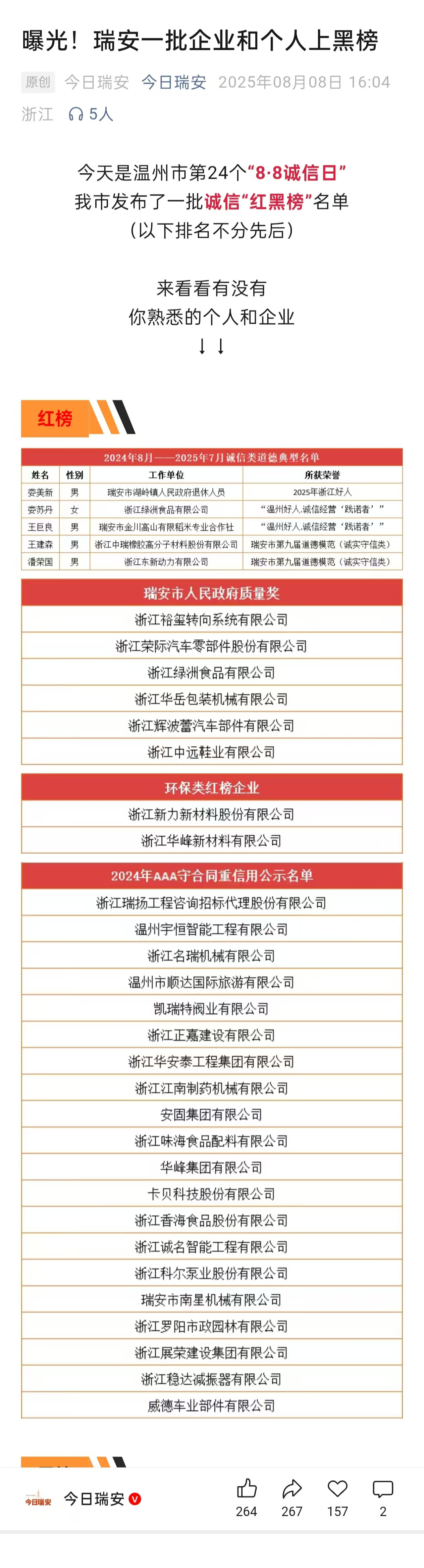 溫州市第24 個 “8?8 誠信日” 發(fā)布誠信 “紅黑榜”,