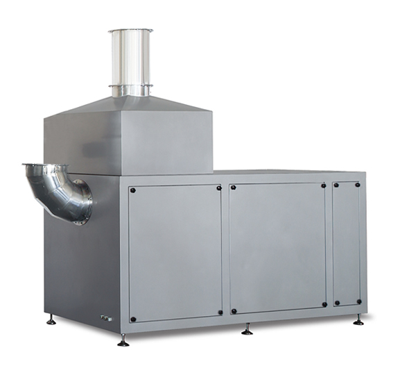 空氣經離心風機吸入,通過初效、中效、表冷除濕、高效過濾器達10萬級凈化且能吸收空氣中的水份,使吹入的空氣干燥,包衣效果更好,再通過熱交換器(蒸汽或電熱)吹入主機滾筒,并配有減震裝置。
