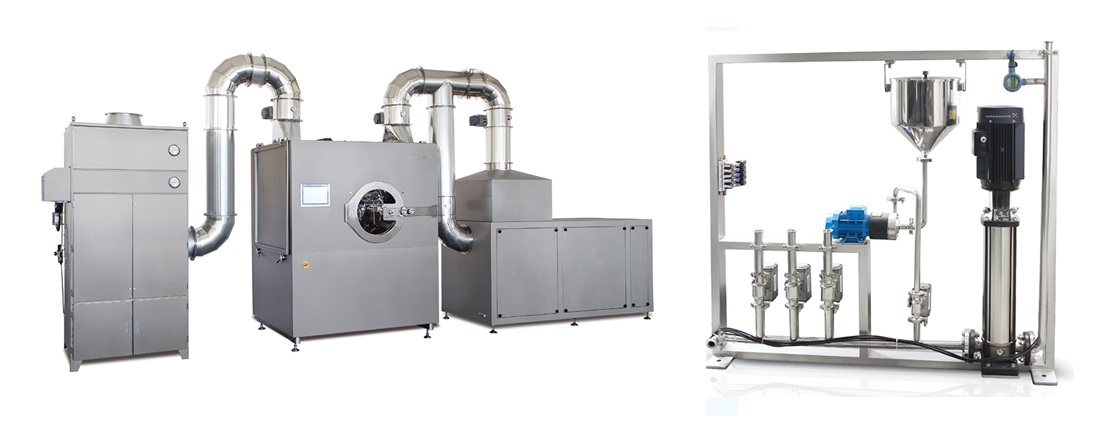 片芯在包衣機(jī)潔凈密閉的旋轉(zhuǎn)滾筒內(nèi),不停地作復(fù)雜軌跡運(yùn)動(dòng),翻轉(zhuǎn)流暢,交換頻繁,由恒溫?cái)嚢柰皵嚢璧陌陆橘|(zhì),經(jīng)過(guò)泵的作用,從噴槍噴灑到片芯上,同時(shí)在熱風(fēng)和負(fù)壓作用下,由熱!風(fēng)柜供給的10萬(wàn)級(jí)潔凈熱風(fēng)穿過(guò)片芯,經(jīng)由底部篩孔,再?gòu)娘L(fēng)門排出,使包衣介質(zhì)在片芯表面快速干燥,形成堅(jiān)固、致密、光滑的表面薄膜、整個(gè)過(guò)程在PLC控制下自動(dòng)完成。
